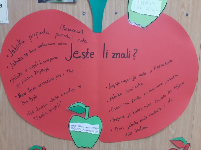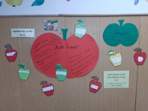 Uz to su izradili plakat na temu jabuke, kojim su uredili školske hodnike u jesenskom ozračju. Kroz sve aktivnosti učenici su naučili zanimljivosti o različitim sortama jabuka, njihovim bojama, okusima i zdravstvenim prednostima.
