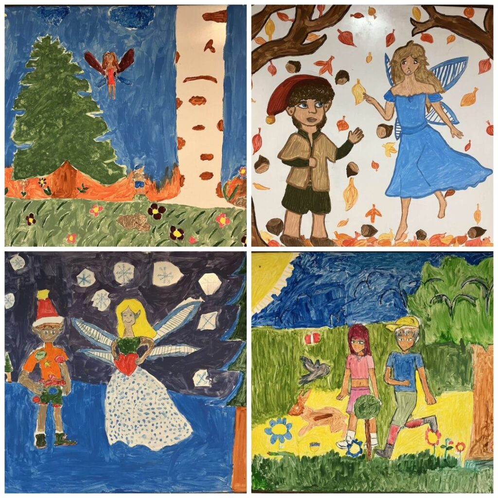 Učenici mlađih razreda sa svojim su učiteljicama izrađivali ukrase od papira (zvjezdice, bombone, pingvine, pahuljice) i njima uljepšavali unutarnji prostor škole, a učenici starijih razreda ugostili su prof. Andreja Zbašnika, čabarskog pjesnika i likovnjaka, koji je za njih pripremio i vodio likovnu radionicu „Priča o Borku i Brezi“. Prema prethodno nastalom literarnom predlošku učenici su crtežima ispričali životnu priču Borka i Breze. Iako je prvotno bilo zamišljeno da glavni likovi budu personificirana stabla, nastali uradci, kao što to često u umjetnosti biva, pretvorili su se u mladića i djevojku te na kraju u šumskog patuljka i lijepu šumsku vilu. Time je naglašena ideja o povezanosti čovjeka i prirode, snazi prijateljstva i ljubavi te važnosti očuvanja prirode. Kolaž slika koje slijede u nastavku najbolje svjedoči o zanimljivim, neobičnim i maštovitim rješenjima učenika koja su oživjela blagovaonicu škole u Tršću.