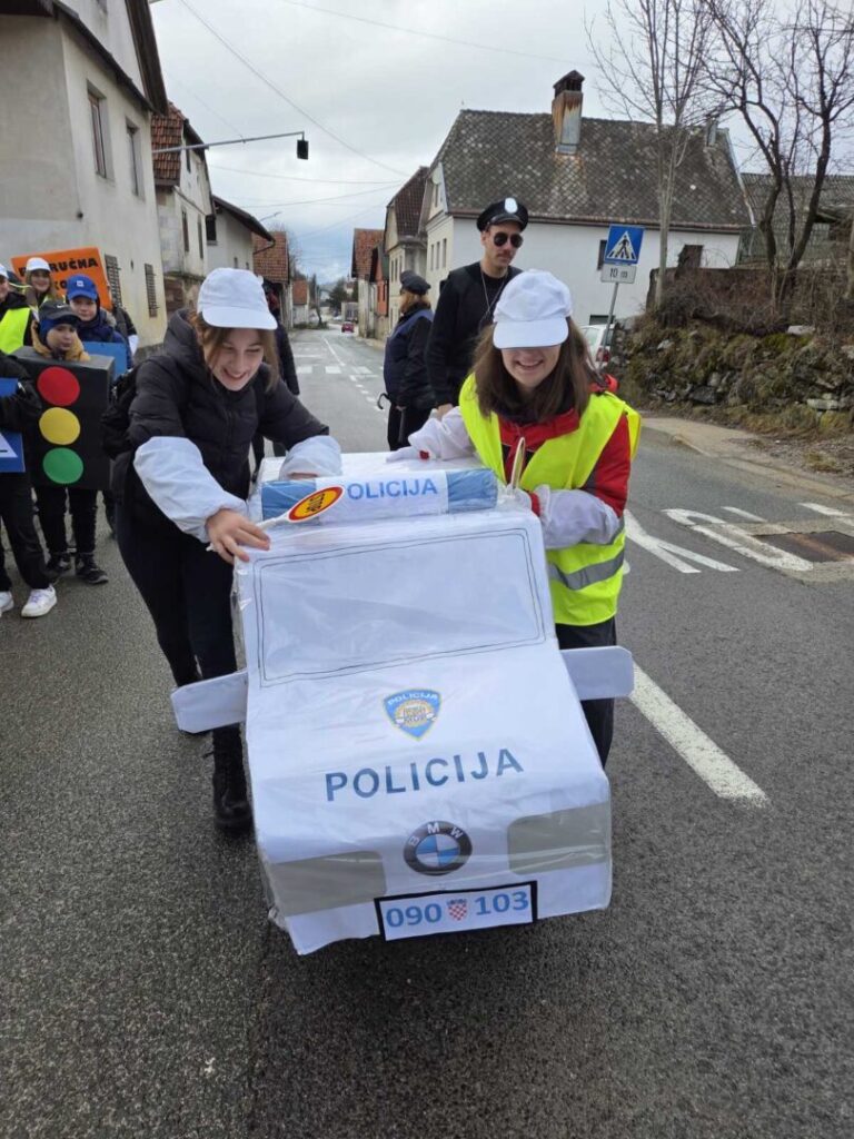 Inspirirani sigurnošću u prometu, učenici su se transformirali u hvale vrijednu prometnu jedinicu. Povorkom su koračali šareni prometni znakovi, budni semafori koji su “palili zeleno” za dobro raspoloženje, te nasmijana policijska patrola. Da bi dojam bio potpun, pridružili su im se i vješti vozači na romobilima, dok je posebnu pažnju plijenilo njihovo alegorijsko vozilo – simpatični mali policijski automobil koji je predvodio ovu veselu kolonu.