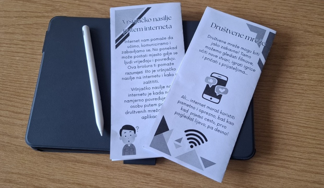 Na kraju radionice, učenici 8. razreda podijelili su brošure koje su samostalno izradili na nastavi informatike. Brošure su usmjerene na podizanje svijesti o vršnjačkom nasilju na internetu i sigurnom korištenju društvenih mreža te su namijenjene učenicima i roditeljima kao poticaj za razgovor o odgovornom i sigurnom ponašanju u digitalnom okruženju.